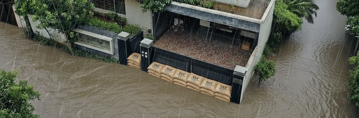 Made from durable, high-quality jute material, these bags rapidly expand on contact with water to form a sturdy barrier that keeps water out. Once your house is shielded, you can relax with complete peace of mind—fast, simple, and reliable protection against urban flooding and monsoon rains.